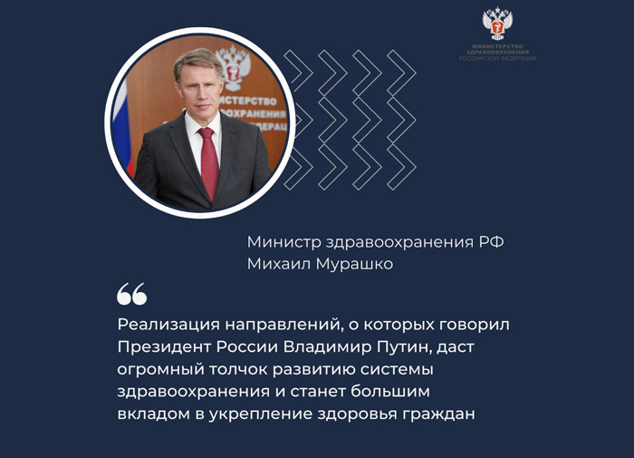 Михаил Мурашко: В послании Федеральному Собранию Президент остановился на ключевых для развития отрасли моментах