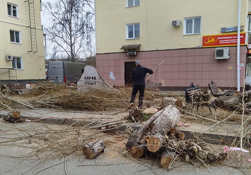 23 апреля проходящие по улице Ленина горожане обратили внимание на поваленные у памятного камня «Серов 100 лет» деревья.