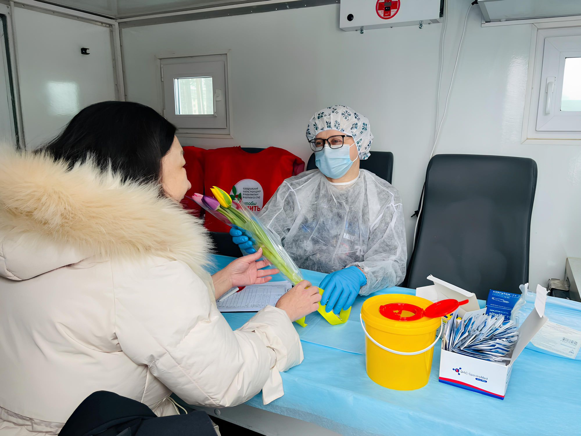 Сотрудники тест-мобиля Свердловского областного центра профилактики и борьбы со СПИД 6 марта подарят жительницам и гостьям Екатеринбурга не только экспресс-обследование на ВИЧ, но и букет цветов.